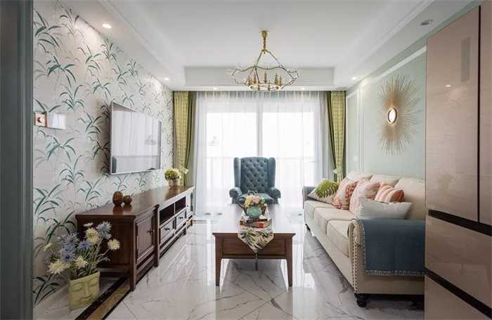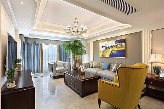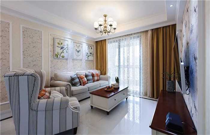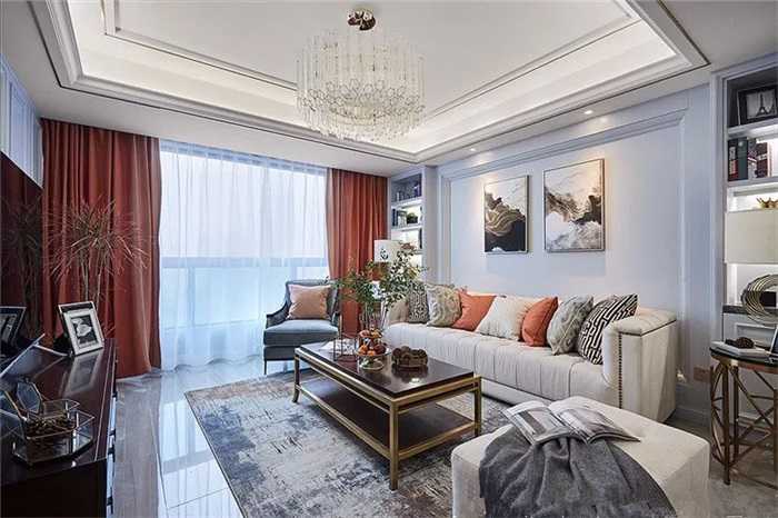 美式風(fēng)格的客廳窗簾,可以選擇像圖13這樣帶有花紋的 窗簾,效果很是優(yōu)雅大氣。