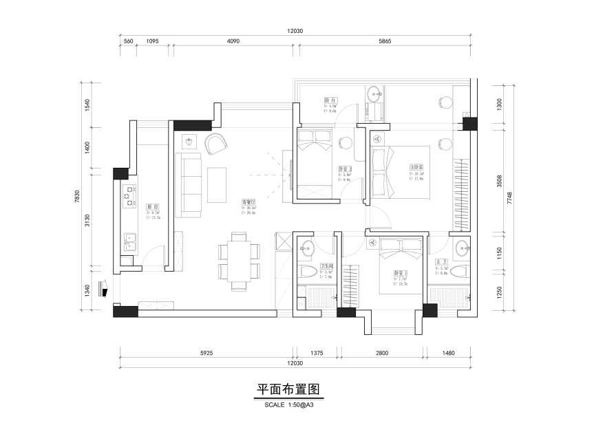 全包裝修 平層 現(xiàn)代簡約 70㎡-100㎡