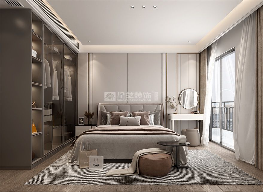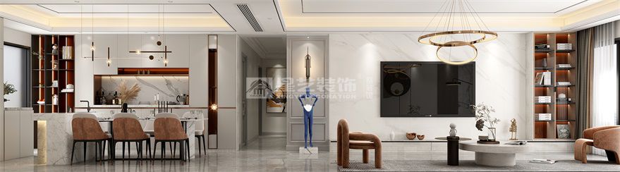 設(shè)計簡潔大方,時尚,前衛(wèi),優(yōu)雅,給人溫暖舒適的感覺。與每個人都熟悉的現(xiàn)代風(fēng)格相比,它具有更多的品質(zhì)和設(shè)計感;它揭示了生活的純潔與純潔,它融合了奢華與內(nèi)涵的氣質(zhì)。視覺空間看起來很寬敞,燈光效果也很好。家具方面,采用灰色色調(diào)和金屬元素點綴,營造平靜而不失時尚氛圍。使整個空間顯得簡單舒適,顯露出一種奢華感。