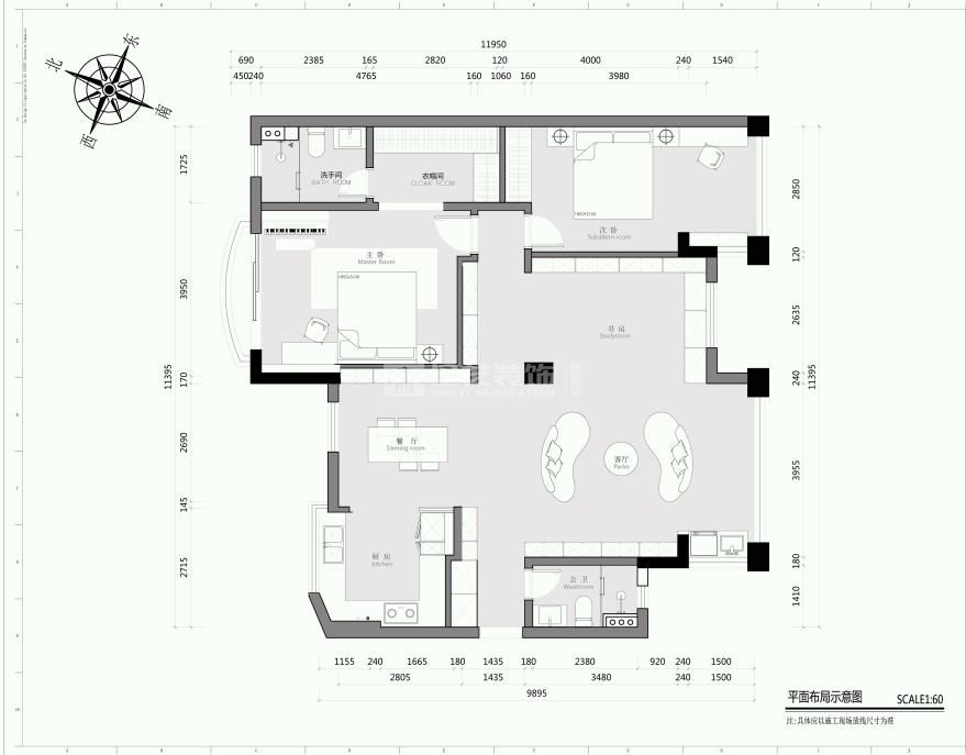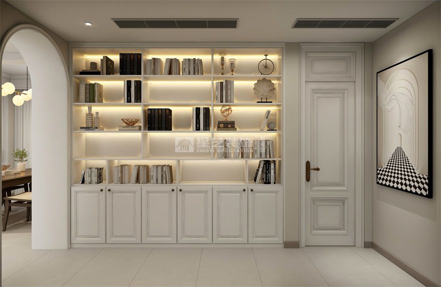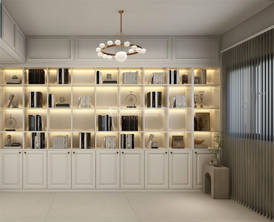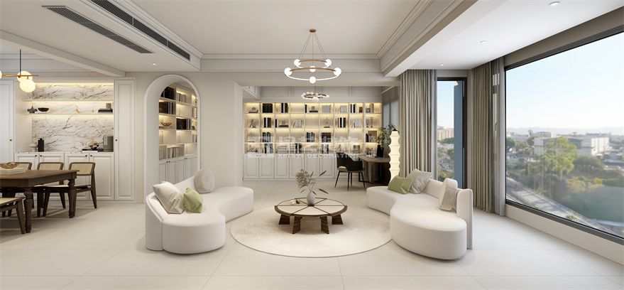 本案設計師圍繞客戶極簡需求,打造出一個極簡整體閱讀空間。同時,圍繞動線、明亮等主題。借助空間設計在書海自由飛翔,非盲目寄托他人或事物,亦可自給自足的情感不同尋常的浪漫。