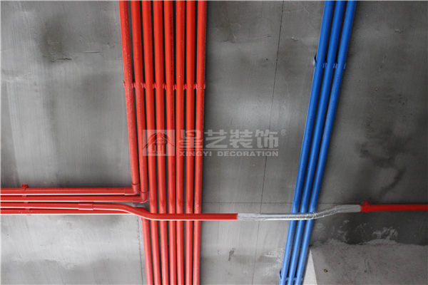 A、PVC管線分紅、藍(lán)二種顏色,紅色為強(qiáng)電管,藍(lán)色為弱電管,