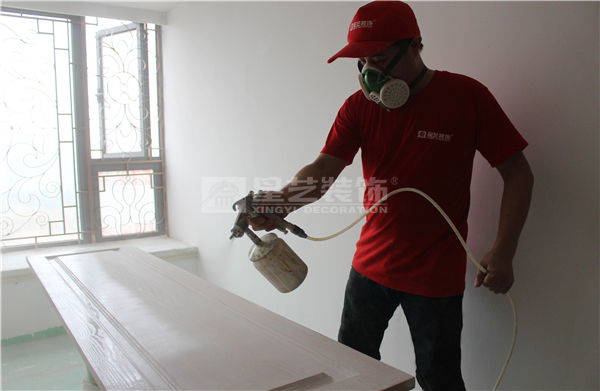 3、噴底漆:在已打磨干凈的木飾面上噴涂底漆。