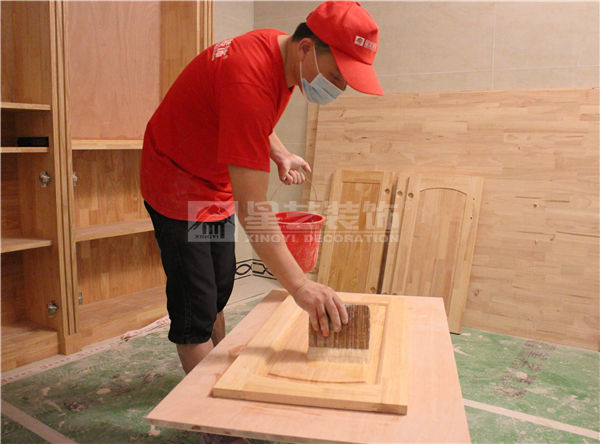 即在需要油漆施工的界面溥刷一層底漆封閉(實木線條應(yīng)在收口時就刷底漆封閉)。