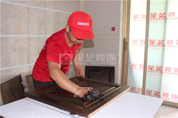 均勻薄刷或刷后用擦布順紋輕擦均勻,擦時注意邊角位一定要擦到位,不可漏擦。